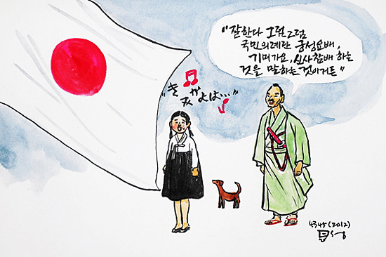 함께 생각하는 교육 국민의례규정 대통령 훈령 제 363호 새로운 학교에서 함께 꿈을 꾸자고 모인 동료들과 지난 1월부터 두 달가까이 일을 하면서 함께 일한다는 것이 역시 쉽지 않구나 하는 것을 느꼈다. 아이들과의 즐거운 교육활동을 하는 것에 대해서는 동의하고 있으나 디테일에 들어가면 마찰이 일어난다. 지난 3월 첫날을 준비하면서 개교하는 학교이기에 입학식의 의미보다는 교직원과 학생, 학부모 모두에게 함께 시작하는 환영잔치마당의 의미가 더 컸다. 의식이 아닌 잔치마당이라면 굳이 국민의례가 필요할까 하는 의문으로 교장, 교감 그리고 교사들의 논의가 진행되었다. 국민의례가 시작된 것은 일제강점기, 일제에 의해 만들어진 의식이라고 한다. (이미지 출처 : 오마이뉴스) 학교에 남아있는 일제의 잔재가 어디 국민의례뿐이겠는가! 교실 전면의 가운데에 떡하니 걸려있는 태극기,..