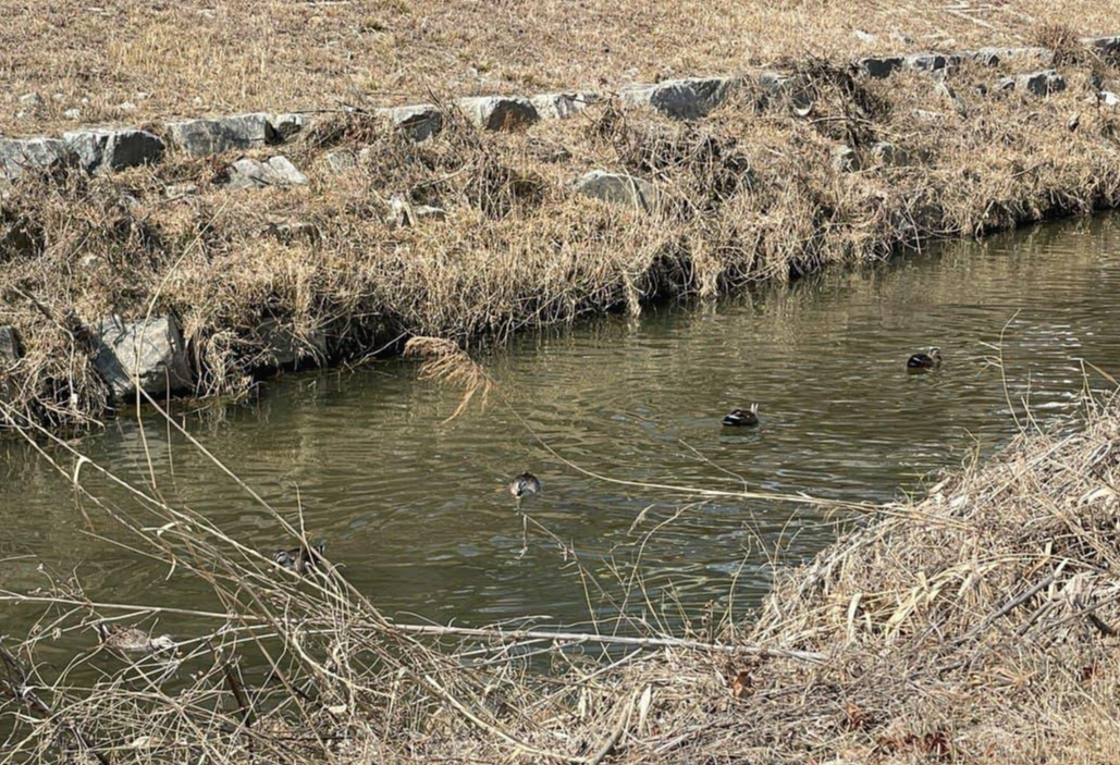 좀 더 걸어가니 수풀에 몸을 숨긴 오리 가족이 따뜻한 햇살에 낮잠을 즐기고 있었다.