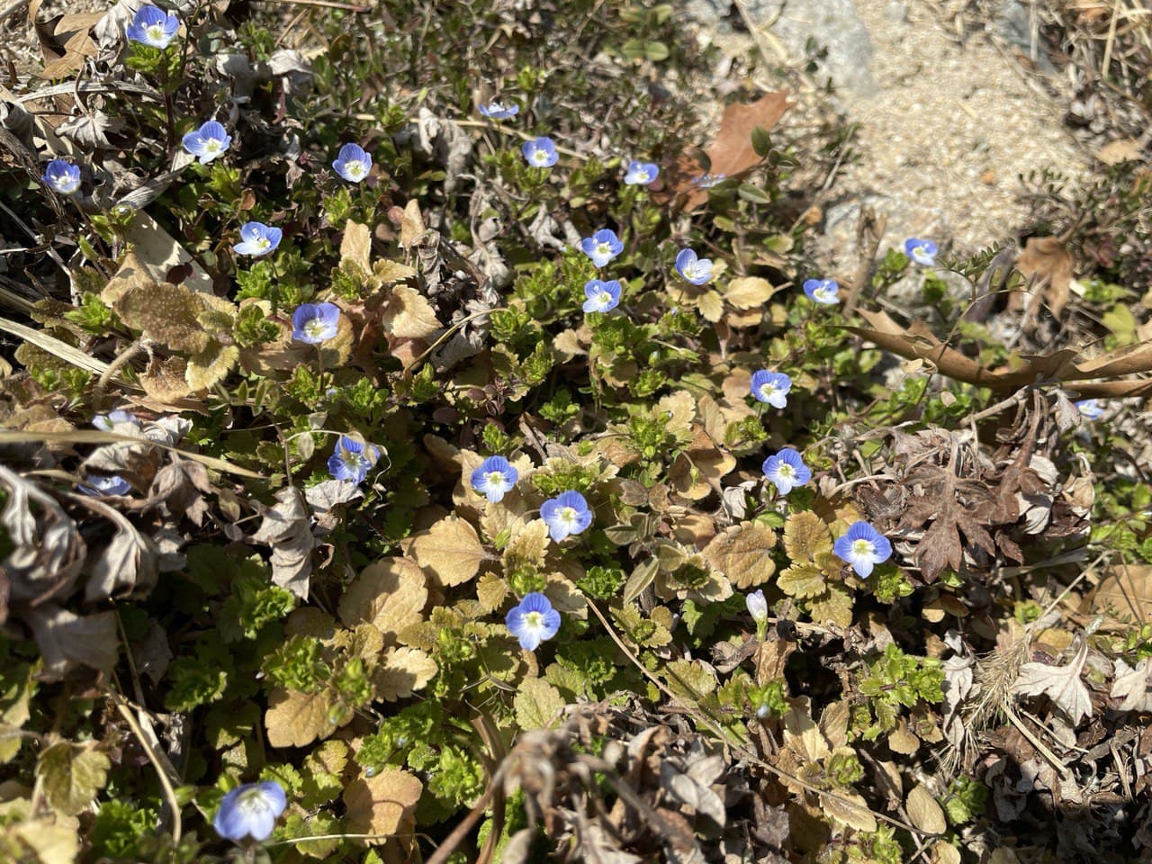 물가 수풀곁엔 봄까지꽃(인터넷 검색하면 큰개불알풀의 꽃이라고 나옴)도 활짝 웃고 있는 이 봄.