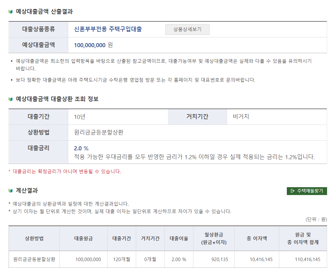 연봉 7천이하의 맞벌이이며 자녀가 없는 신혼부부가 생애최초로 1억을 대출받아 10년간 상환해나갈 경우,