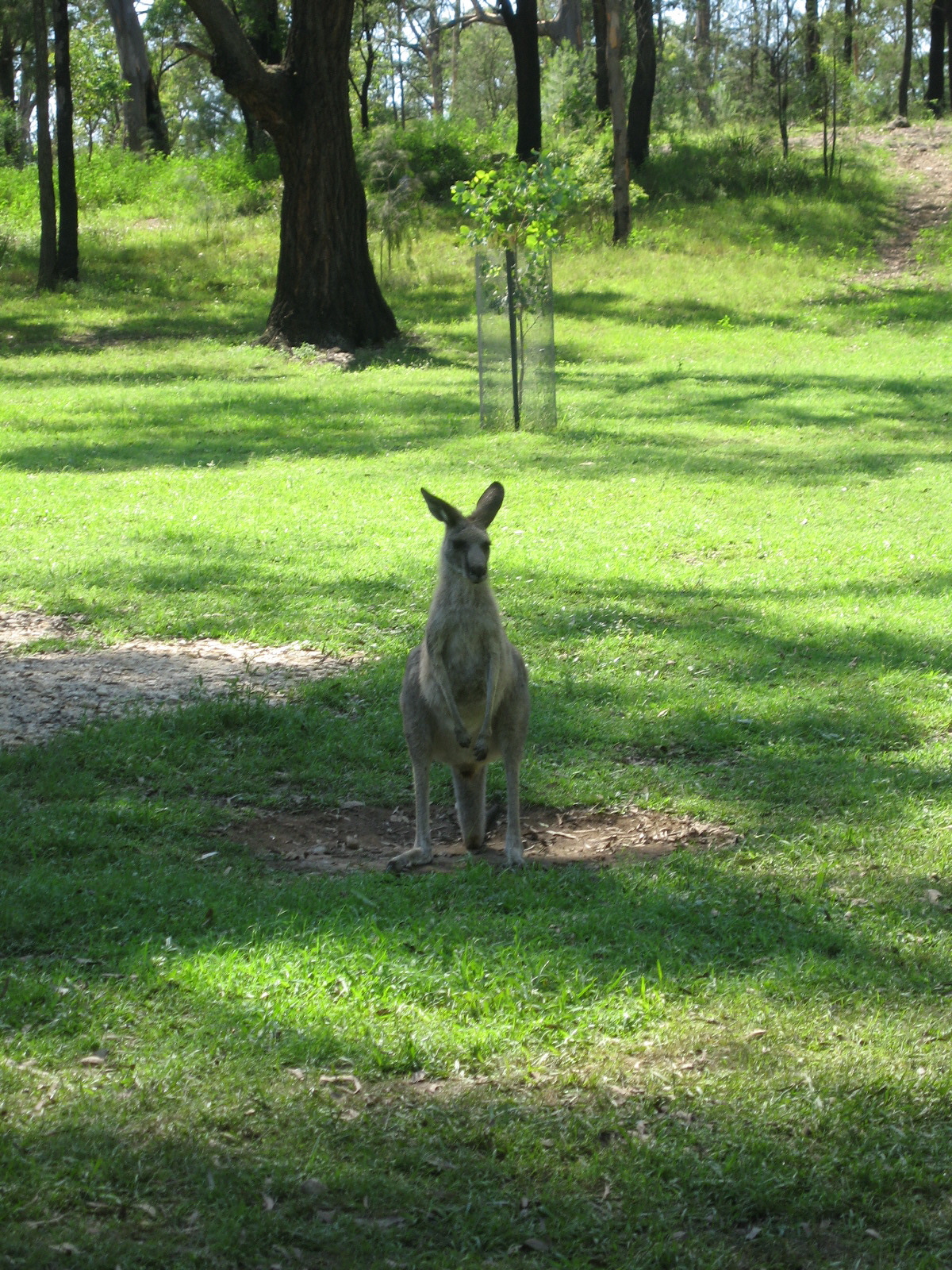 환영인사를 하는 지 아님 관광객을 구경하고 있는 지 모르겠지만 앉아서(?) 포즈를 취하고 있던 캥거루 한 컷.