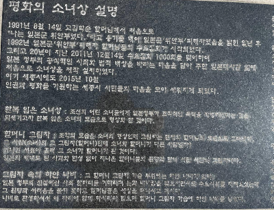 소녀상에 숨겨져있는 의미들을 자세히 알아볼 수 있는 판석도 있다.