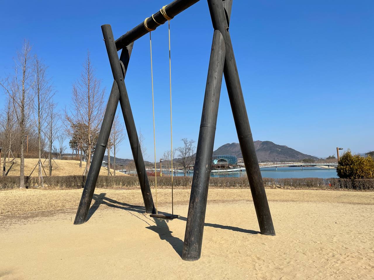 정자에서 내려와 춘향이가 치맛자락을 펄럭이며 뛰었을 그네 하나 떡 하니 자리잡고 있었다.