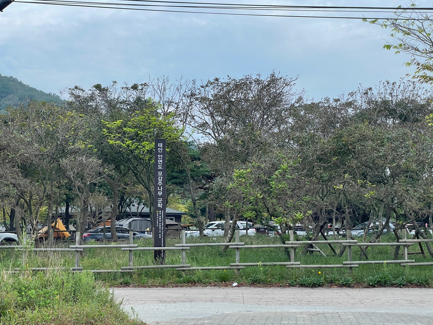 캠핑장부근에는 모감주나무 군락이라는 안내가 적혀있었다.