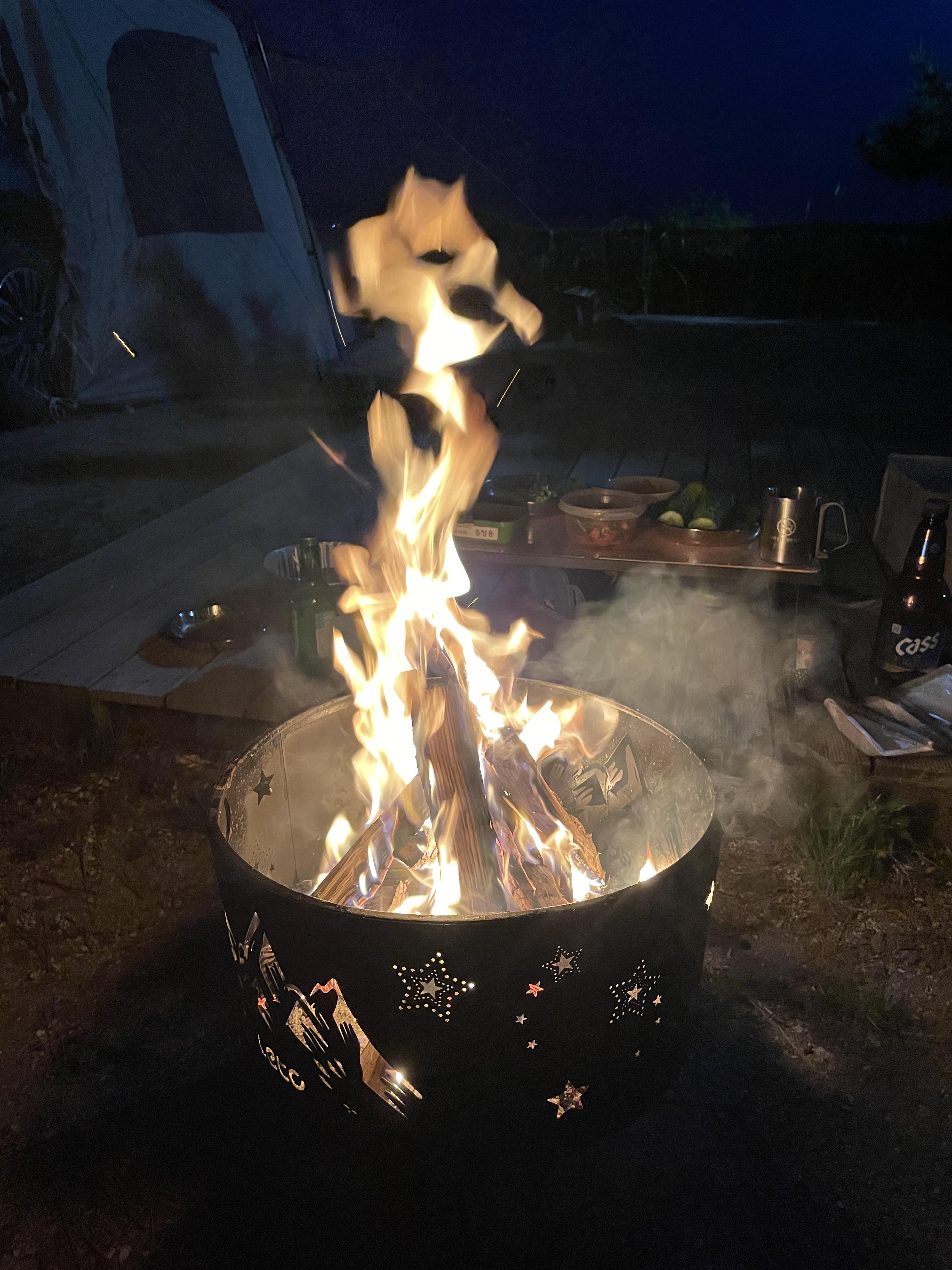 새롭게 장만한 캠핑용 냉장고와 화로덕분에 풍미좋은 저녁 만찬을 즐기고 하루 마무리!